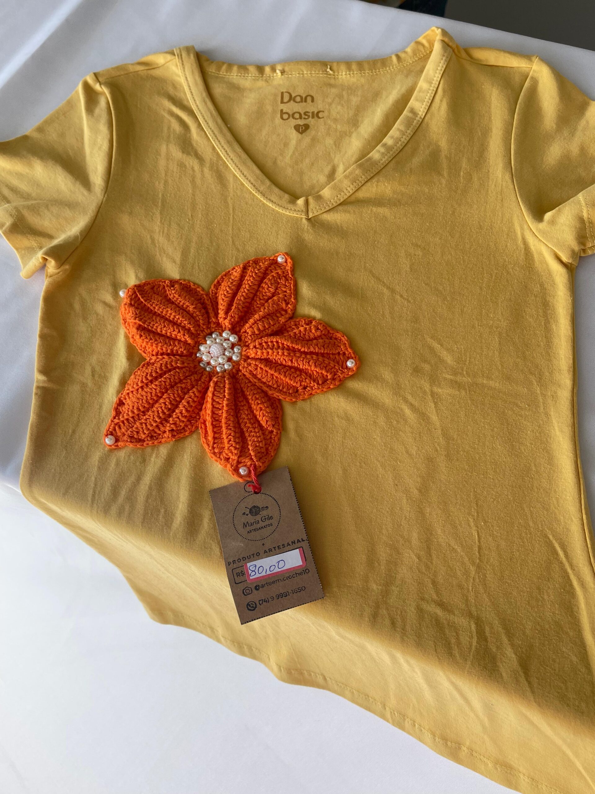 T-shirt personalizadas com detalhes em crochê, feitas à mão com tecido macio e sustentável. Conforto e estilo únicos, unindo praticidade e charme artesanal em cada peça.